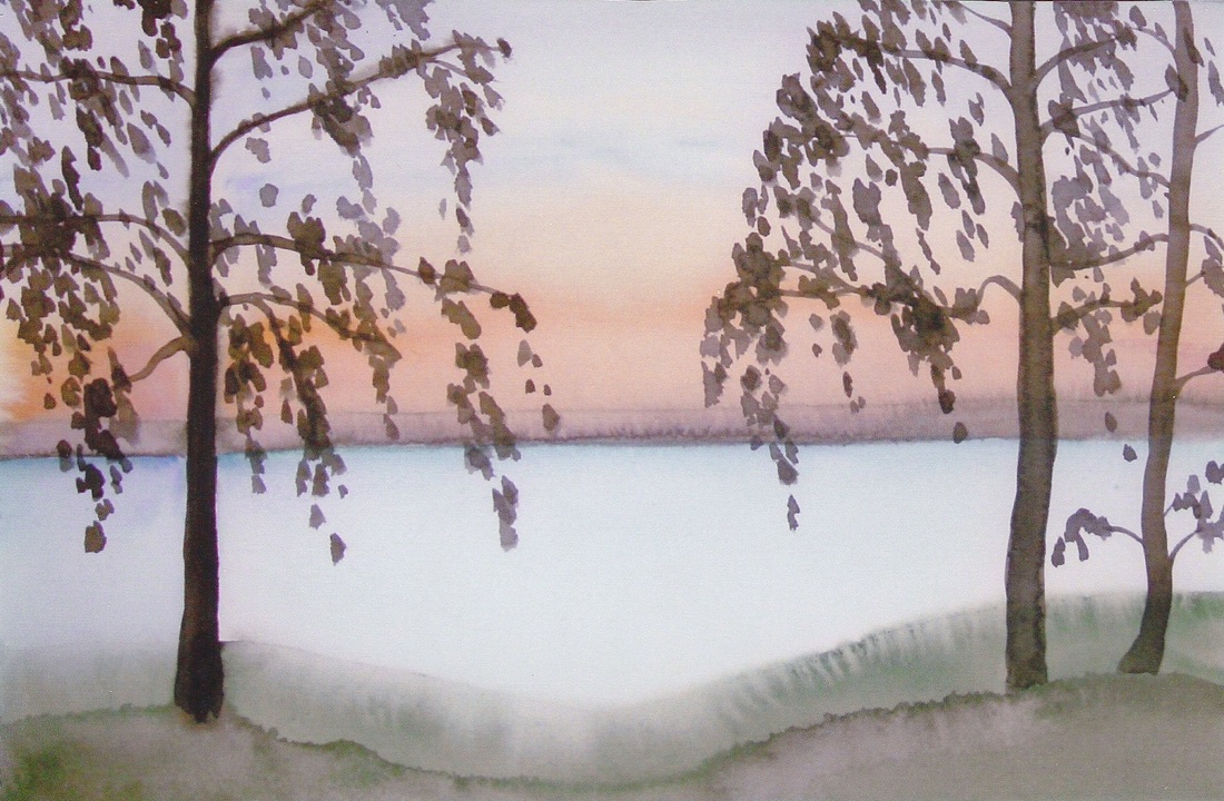 Paisatge a aquarel·la de la llacuna de Gallocanta.