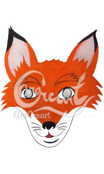 - ENG. Cardboard/cardboard mask. Face of the fox from the story "The Little Prince". Original sheet drawn by hand with pencils and colored pencils.