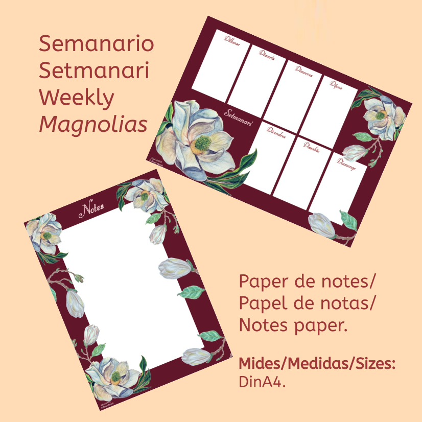 Con magnolias (flores con fondo granate).
